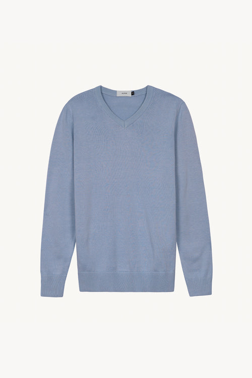Lightweight V-Neck Jersey in Dusty Blue